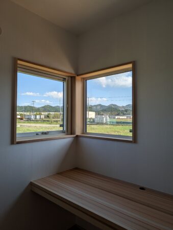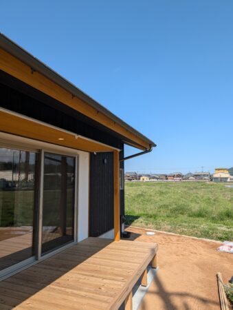 深い軒と、広めのウッドデッキから田園風景が見渡せます。