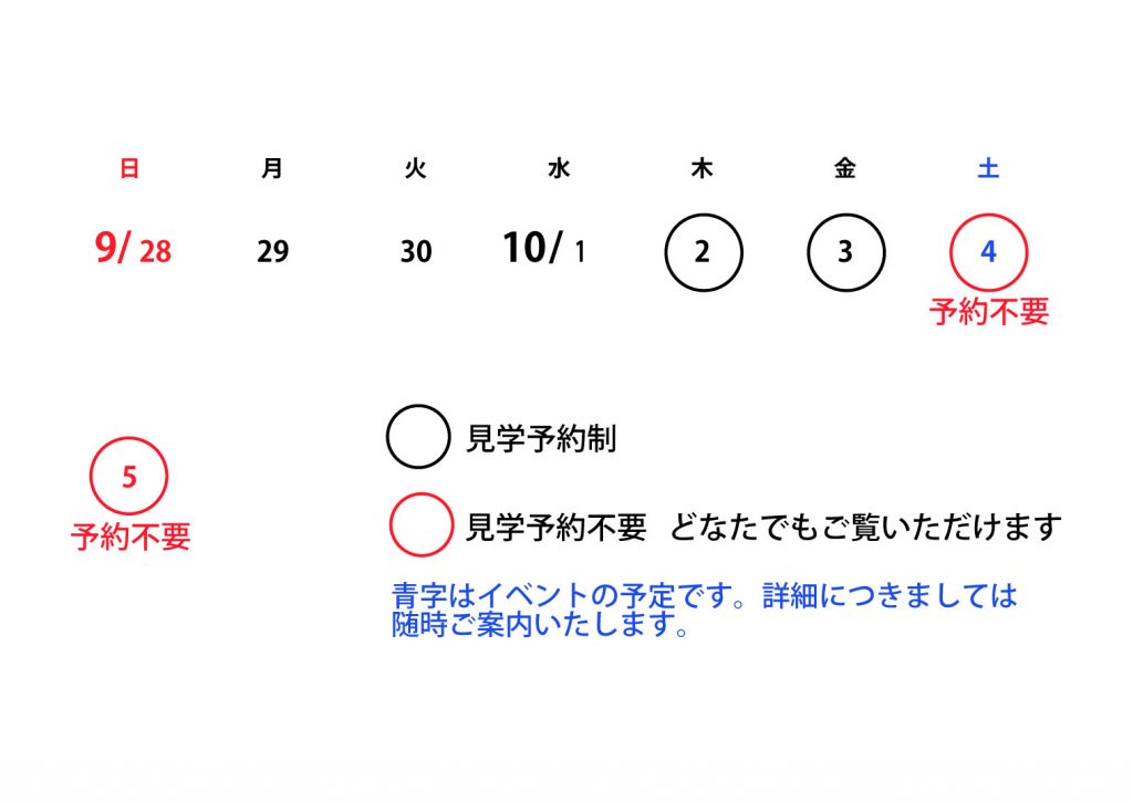 見学会は予約が必要な日程と予約不要な日程があります。